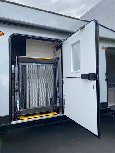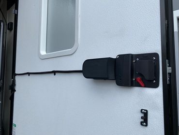 We are excited to offer the convenience of opening and closing your accessible RV door at the push of a button. This system features a 12 Volt compressor and 24" cylinder designed to open and close 48" wide RV doors. With an integrated door release and wireless remote it couldn't be any easier. The Door System comes with a 2 Year Warranty.